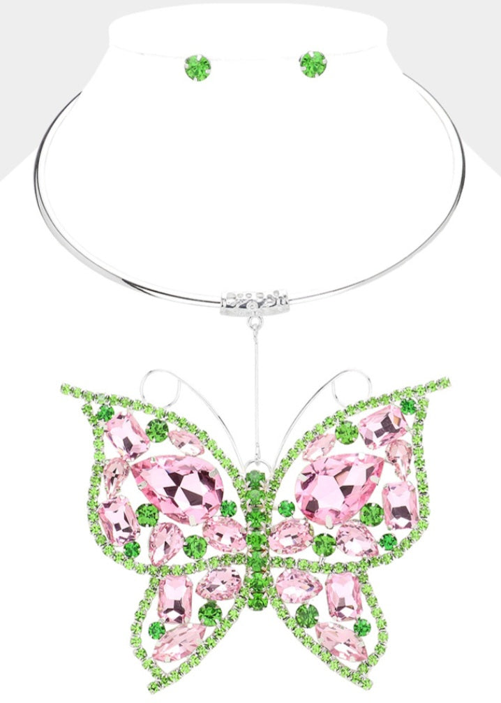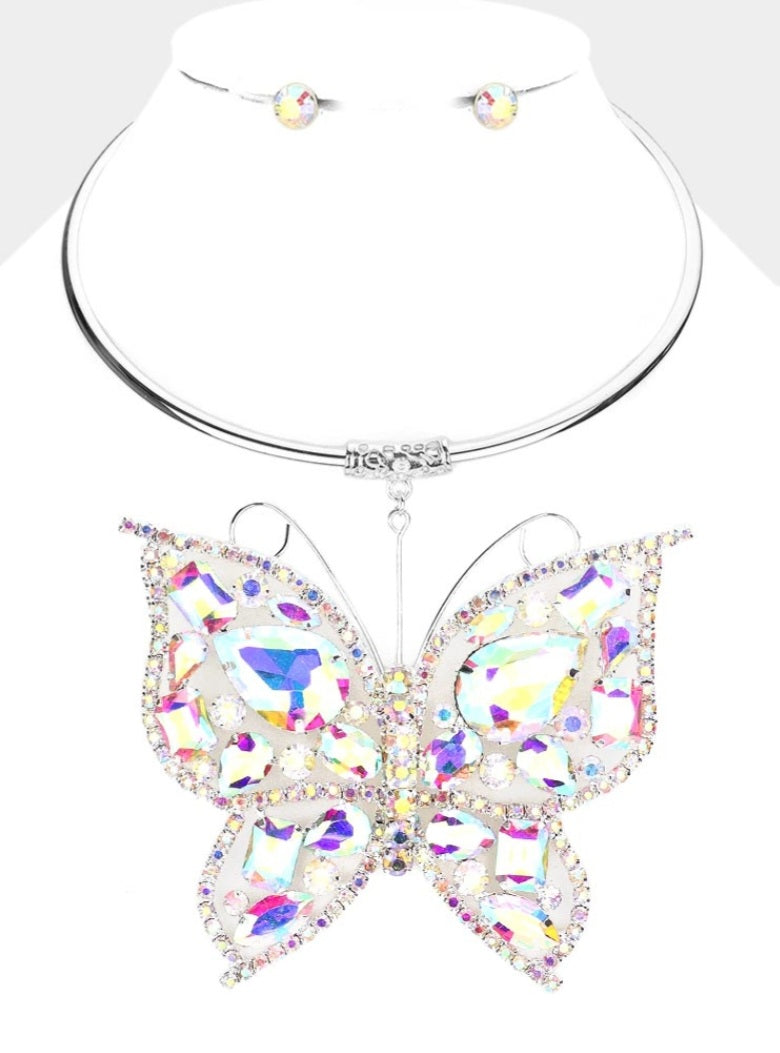 Stone Embellished Butterfly Pendant Necklace